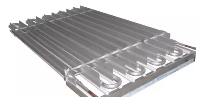 (2)結(jié)構(gòu)特殊:鋁合金翼片管的翼片與鋁管平行,形成片狀形狀,成型的鋁排將片狀翼片管平行固定,組成了若干個(gè)平行通道,制冷系統(tǒng)工作時(shí)冷空氣在通道內(nèi)形成煙道效應(yīng),被加速下沉,對(duì)流加快,所以降溫速度快,節(jié)省大量電能;