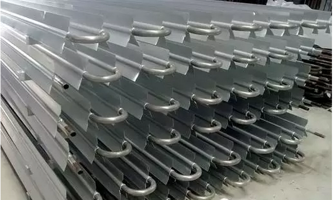 鋁排管材質(zhì)為防腐能力強(qiáng)的鋁合金,表面陽(yáng)極氧化處理,鋁排結(jié)構(gòu)設(shè)計(jì)為翅片與管一體壓鑄成型,管徑為?25,?28,?32等多種規(guī)格,管內(nèi)有內(nèi)平行細(xì)齒,多片翼片管平行安裝,經(jīng)彎管焊接形成大面積鋁排。